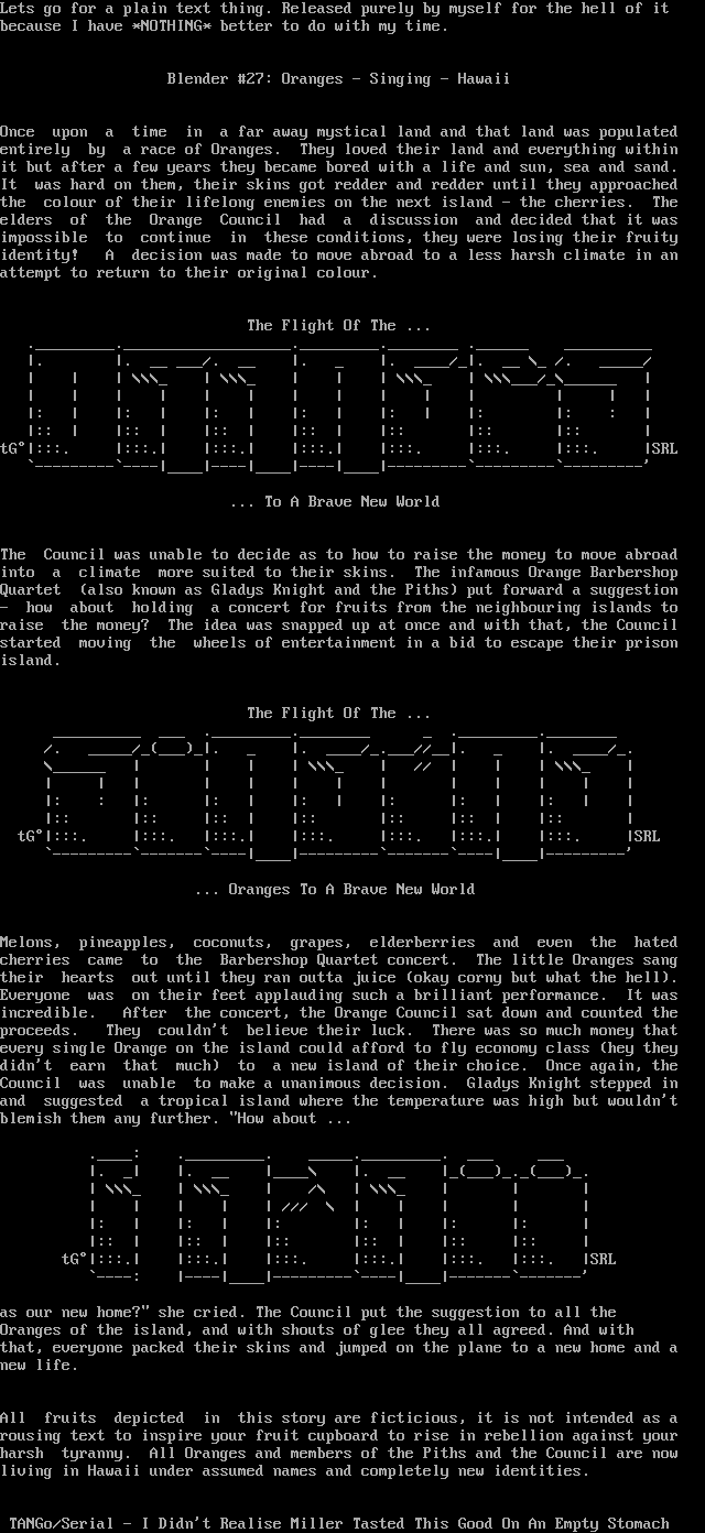 Lets go for a plain text thing. Released purely by myself for the hell of it