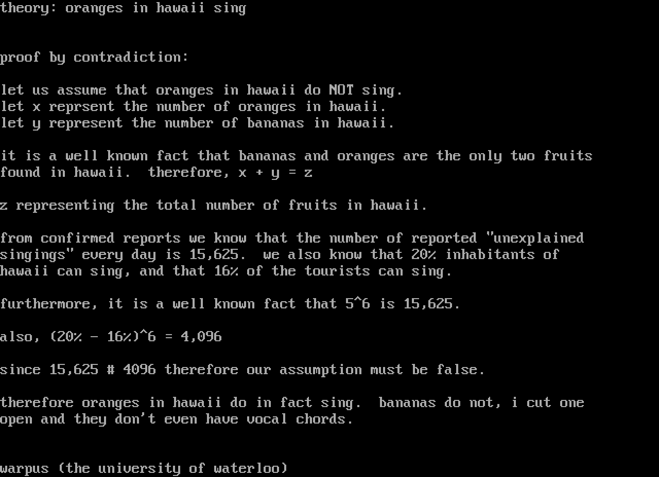 therefore oranges in hawaii do in fact sing. bananas do not, i cut one