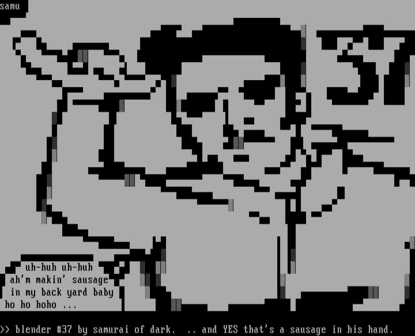 blender 37 by samurai of dark. .. and YES thats a sausage in his hand.