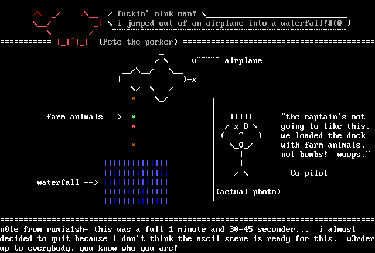 decided to quit because i dont think the ascii scene is ready for this. w3rderup to everybody, you know who you are!