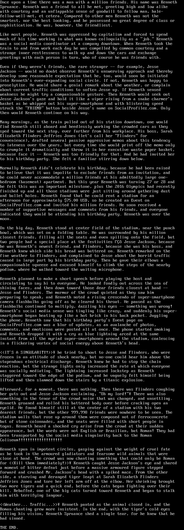 dearest friends, but the other 999,998 friends were nowhere to be seen. The
