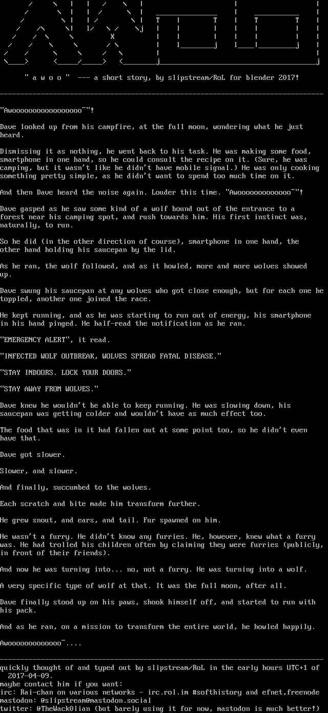 a w o o --- a short story, by slipstream/RoL for blender 2017!