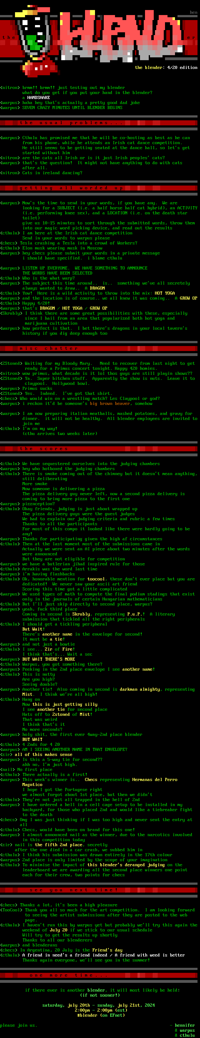 warpus SEVEN CRAZY MINUTES UNTIL BLENDER BEGINS