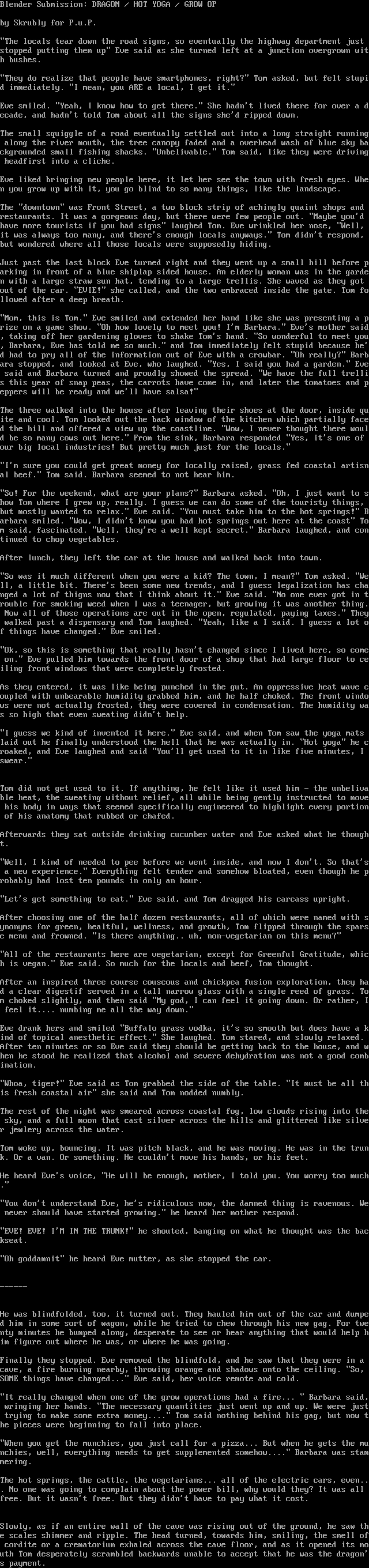 Blender Submission: DRAGON / HOT YOGA / GROW OP