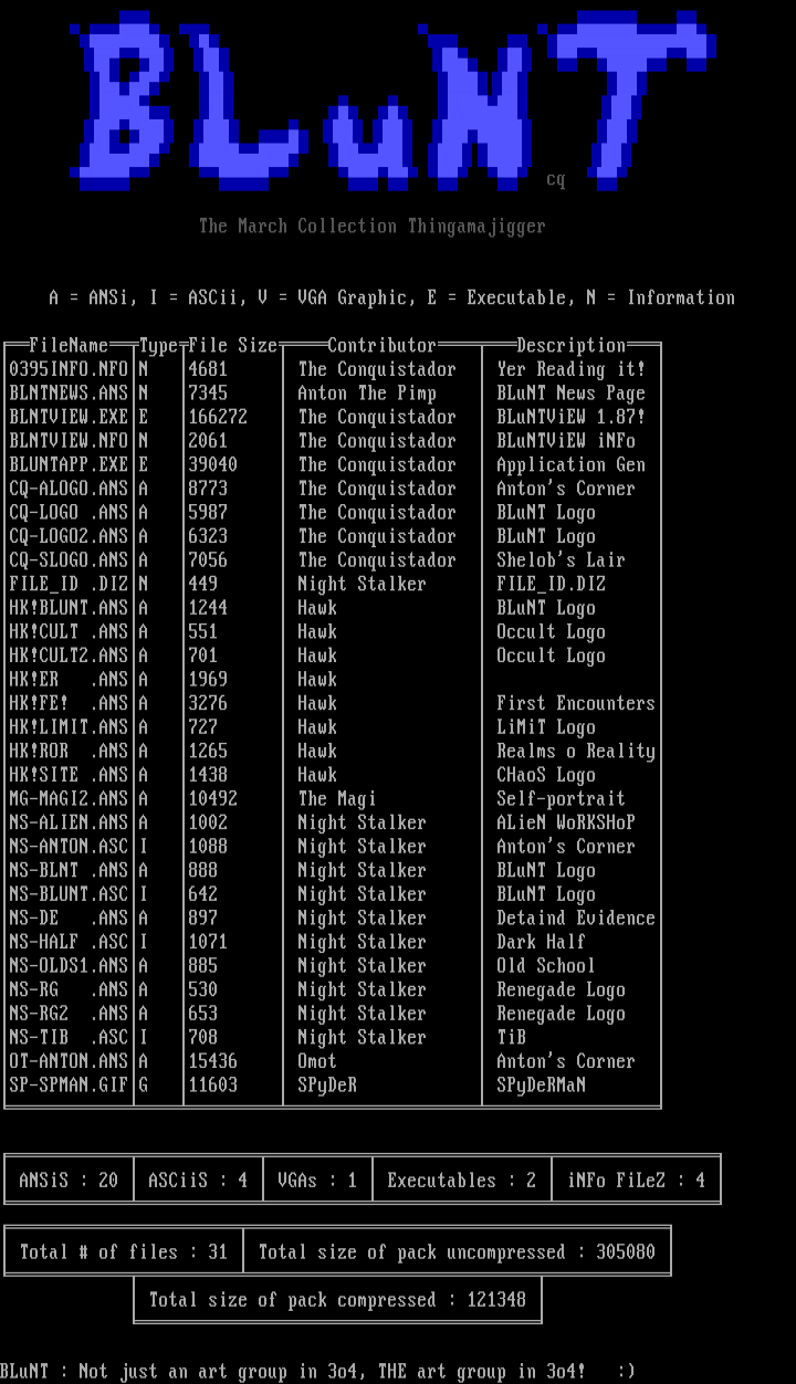 ANSiS : 20 ASCiiS : 4 VGAs : 1 Executables : 2 iNFo FiLeZ : 4