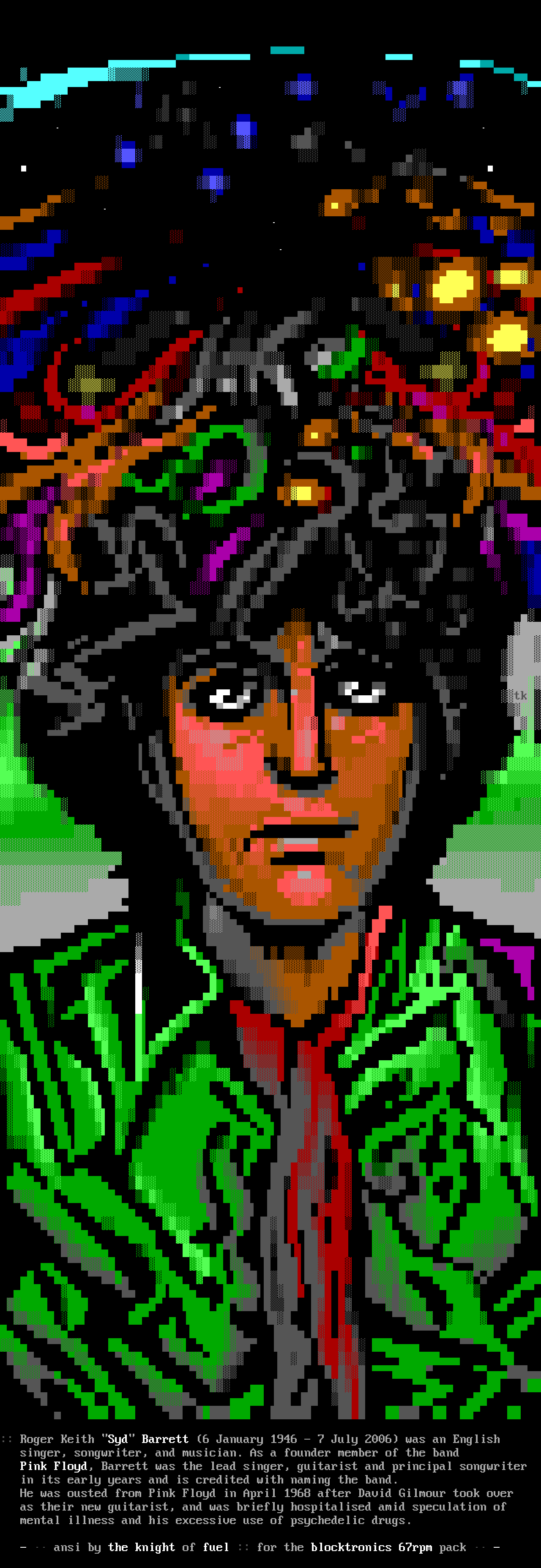 :: Roger Keith Syd Barrett 6 January 1946 - 7 July 2006 was an English