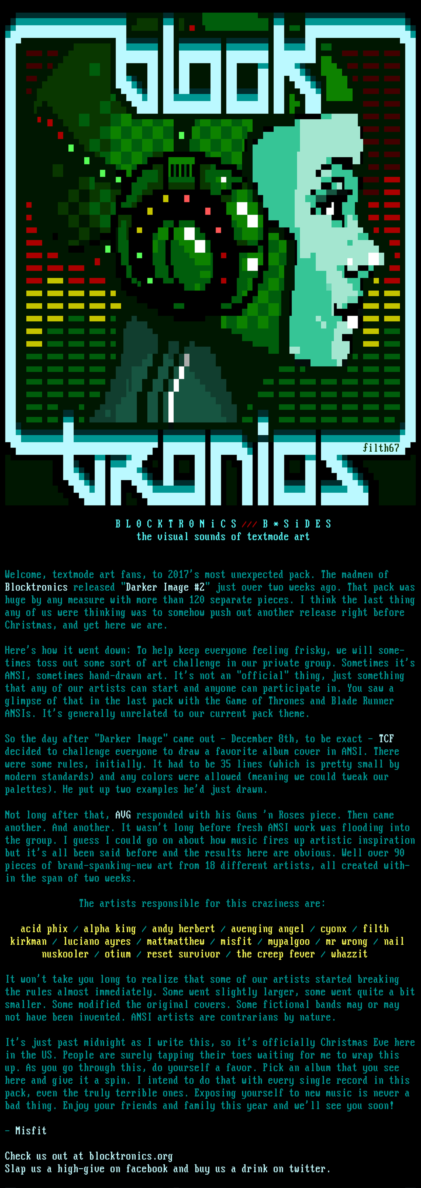 Welcome, textmode art fans, to 2017s most unexpected pack. The madmen of