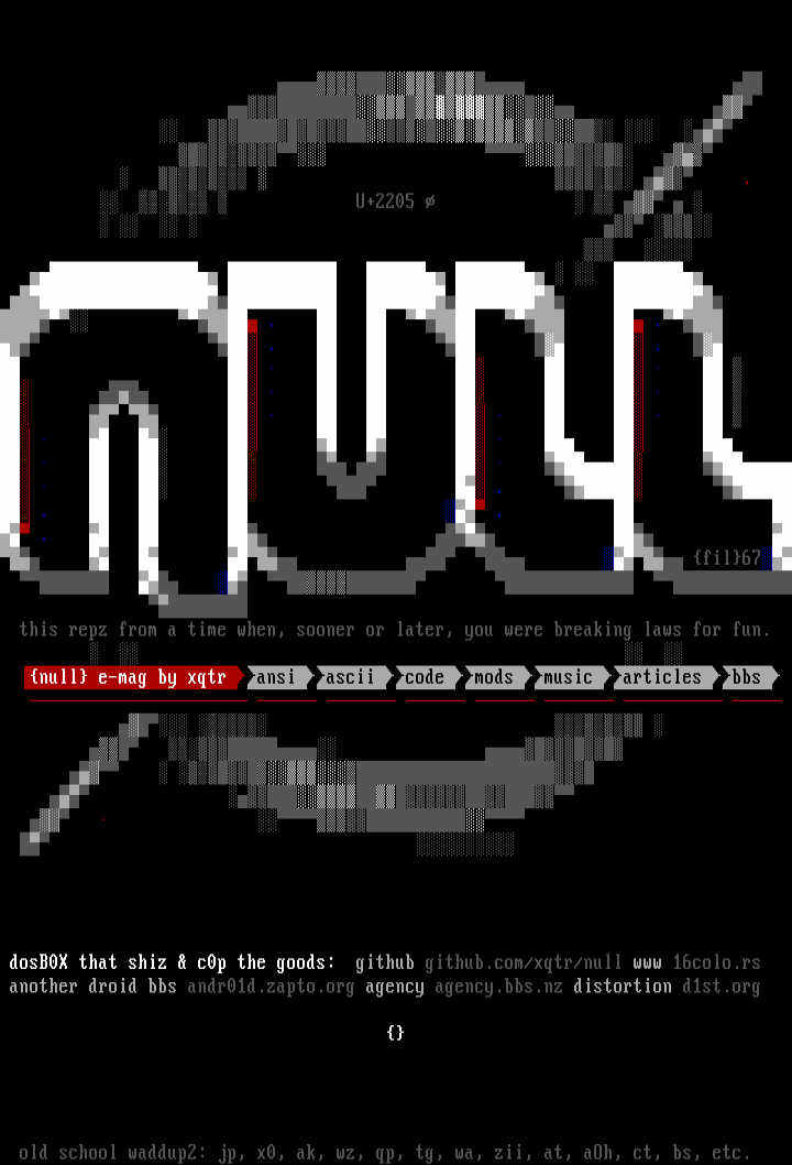 null e-mag by xqtr ansi ascii code mods music articles bbs