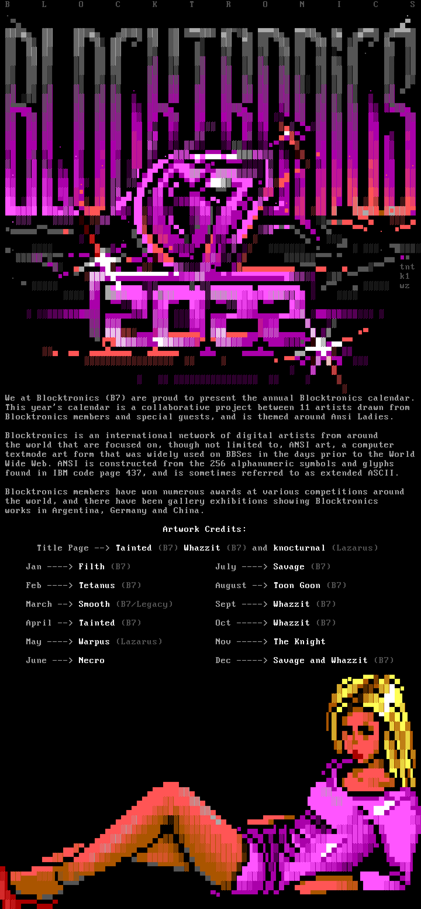 Blocktronics members and special guests, and is themed around Ansi Ladies.