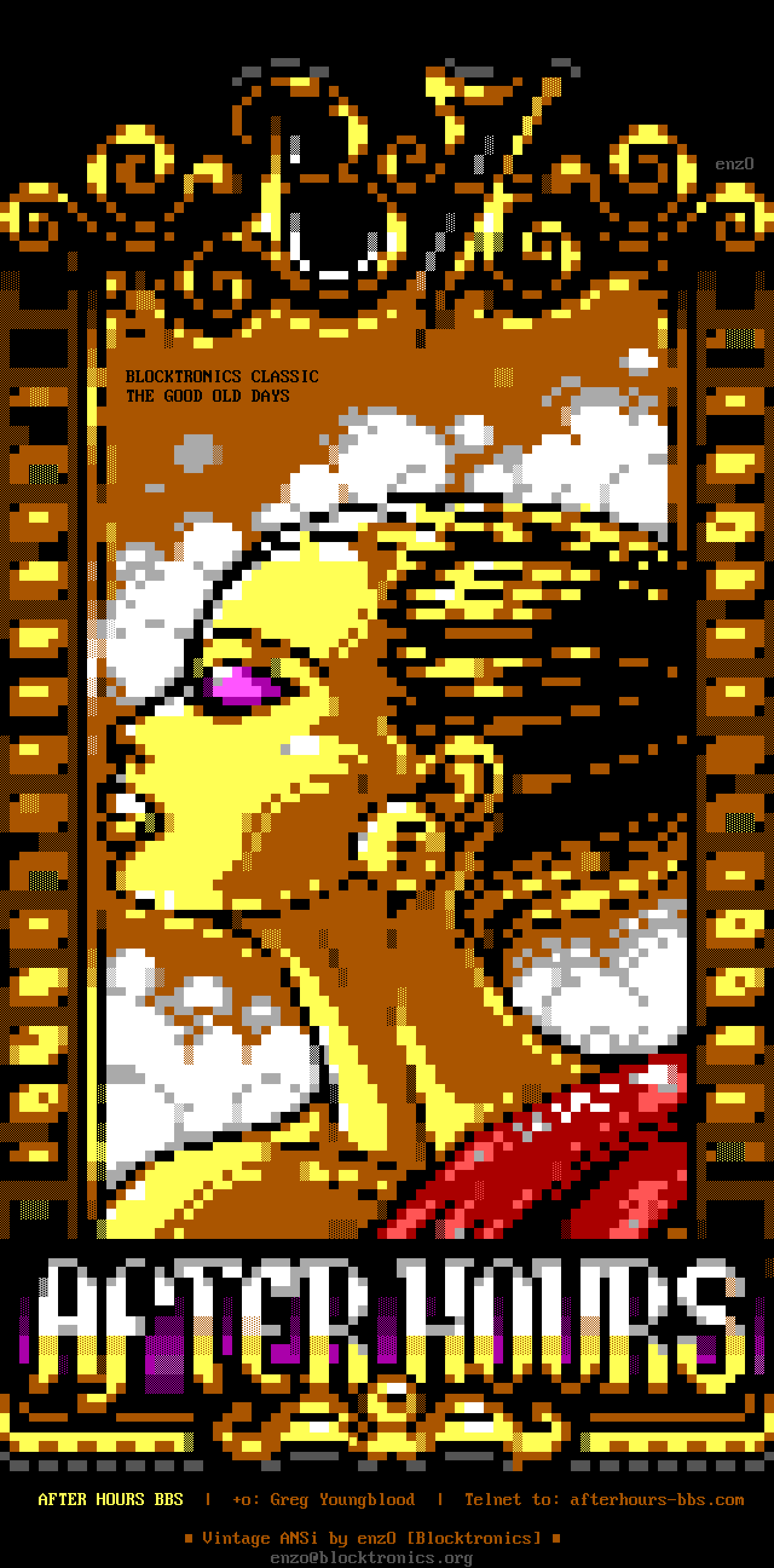 AFTER HOURS BBS +o: Greg Youngblood Telnet to: afterhours-bbs.com