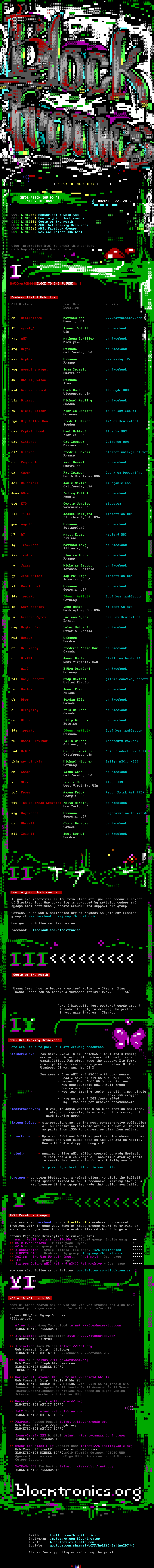 000I LINE0087 Memberlist Websites 00II LINE0251 How to join Blocktronics 0III LINE0294 Quote of the month 00IV LINE0294 ANSi Art Drawing Resources 000V LINE0345 ANSi Facebook Groups 00VI LINE0369 Web and Telnet BBS List R View information.html to check this content with hyperlinks and bonus photos.