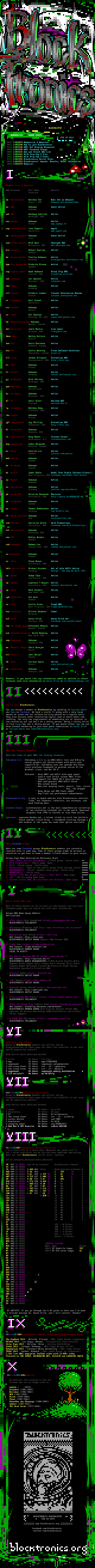 FEB 28 2014 000I LINE0074 Memberlist Websites 00II LINE0290 How to join Blocktronics 0III LINE0310 ANSi Art Drawing Resources 00IV LINE0349 ANSi Facebook Groups 000V LINE0372 Web and Telnet BBS List 00VI LINE0431 ACiD Trip:Top 5 Pics 0VII LINE0453 ACiD Trip:Top 5 Fonts VIII LINE0476 Blocktronics Artist Stats 00IX LINE0553 Blocktronics Awards, Results, Other Information 000X LINE0570 Memorial