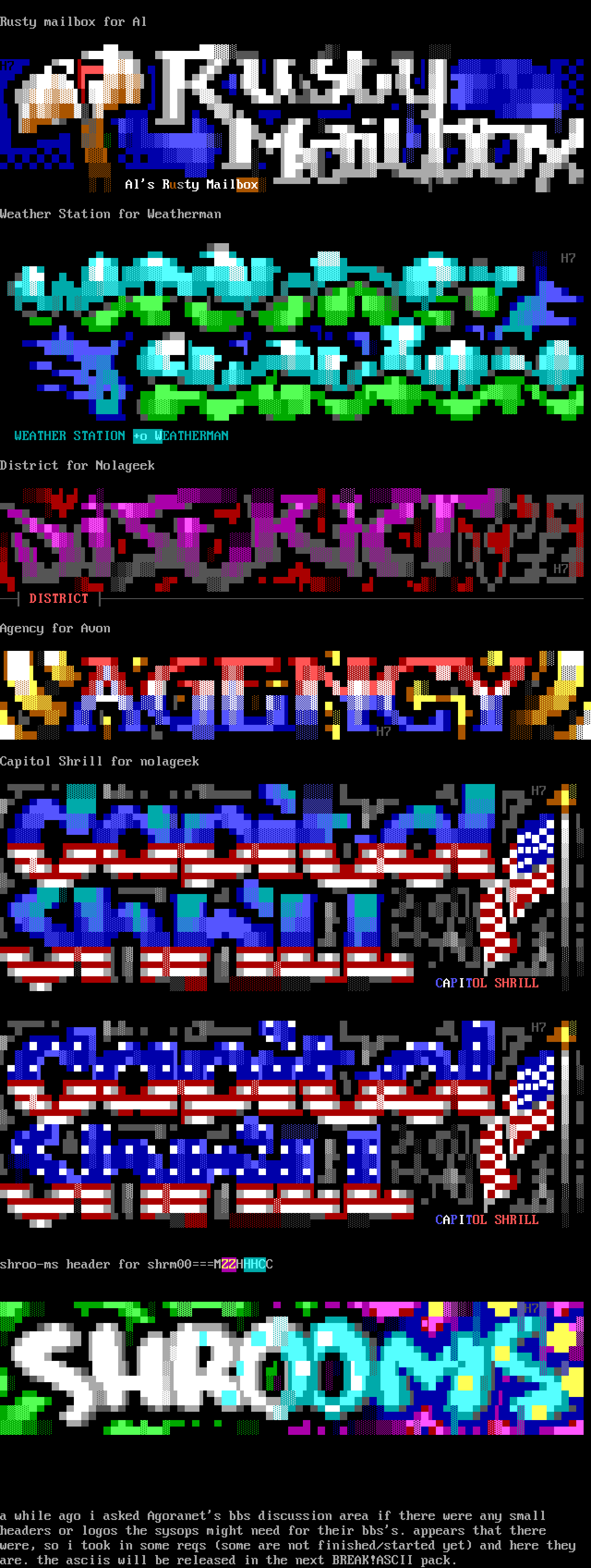 headers or logos the sysops might need for their bbss. appears that there