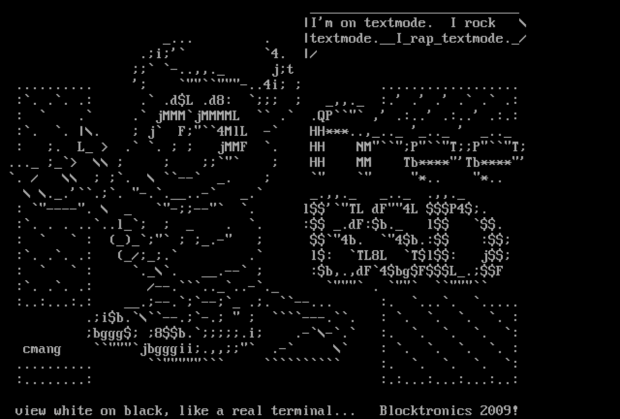 view white on black, like a real terminal... Blocktronics 2009!