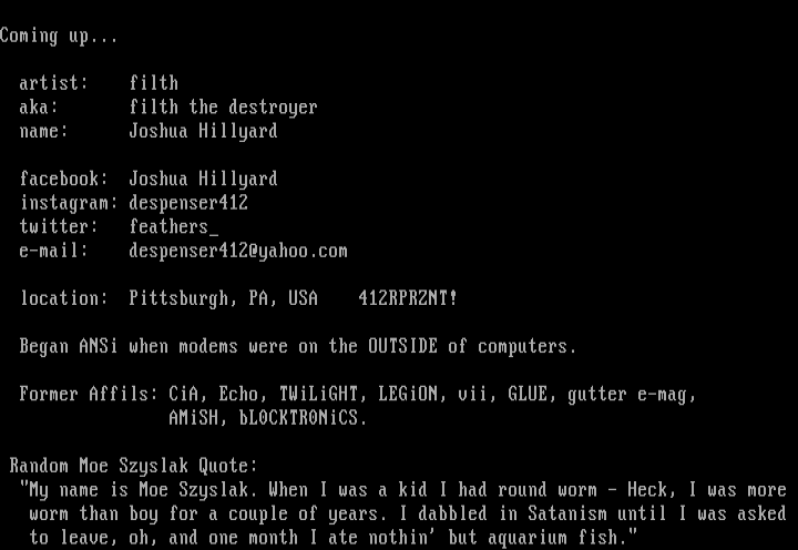 Began ANSi when modems were on the OUTSIDE of computers.