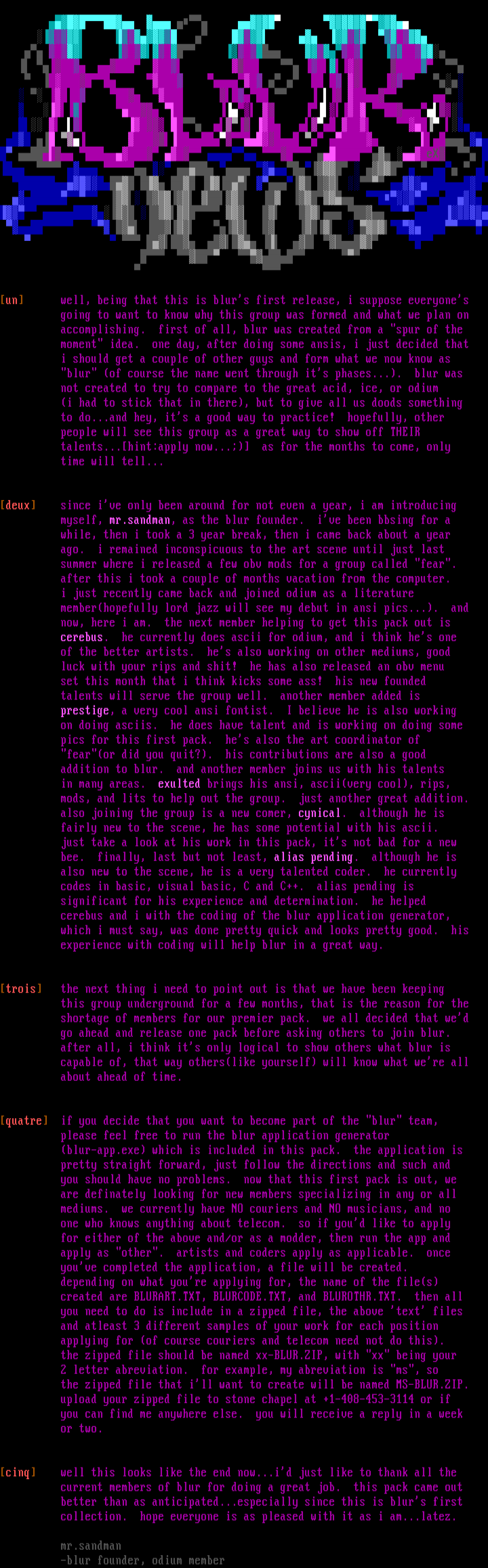 created are BLURART.TXT, BLURCODE.TXT, and BLUROTHR.TXT. then all