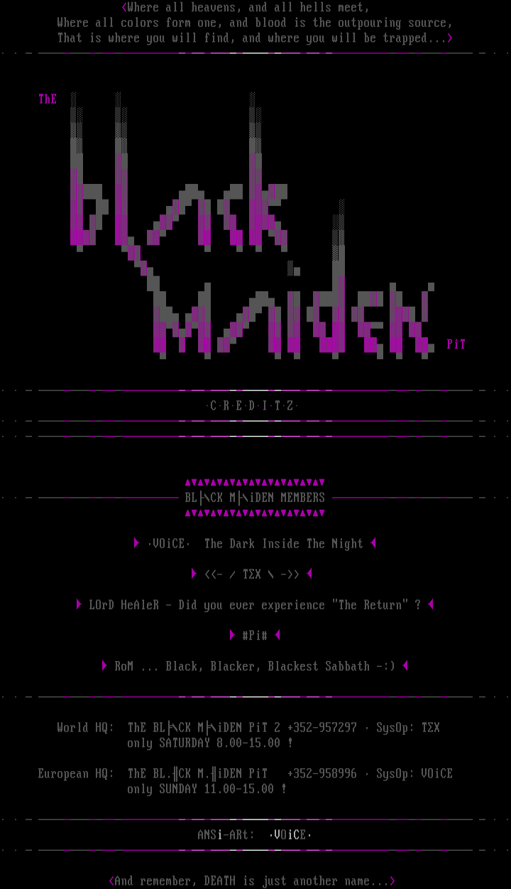 World HQ: ThE BLCK MiDEN PiT 2 +352-957297 SysOp: TX
