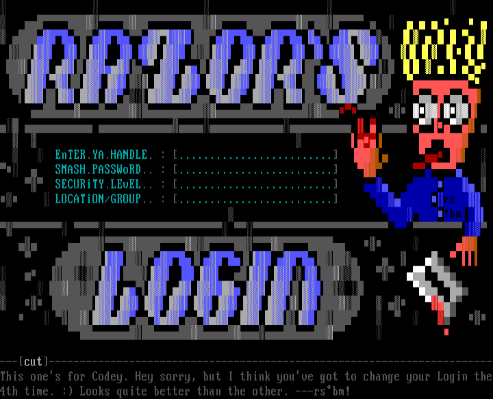 ---cut------------------------------------------------------------------------This ones for Codey. Hey sorry, but I think youve got to change your Login the4th time. : Looks quite better than the other. ---rsbm!