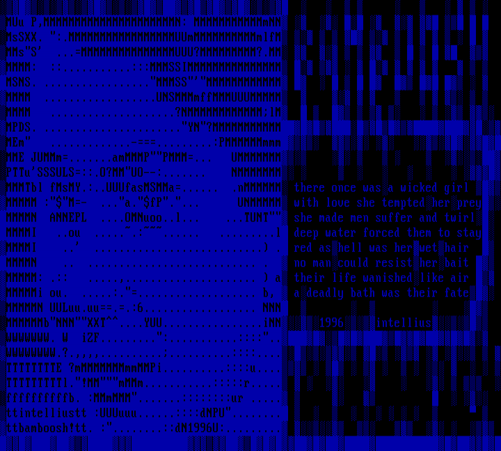 MPDS. ......................YN?MMMMMMMMMMMMEm .............-.........:PMMMMMMmmm MME JUMMm.......amMMMPPMMM... UMMMMMMM PTTuSSSULS::.O?MMUO--:....... NMMMMMMM MMMTbl fMsMY.:..UUUfasMSMMa...... .nMMMMMM there once wasa wicked girl MMMMM :M- ...a.fP.... UNMMMMM with love she temptedherpreyMMMMN ANNEPL ....OMNuoo..l... ...TUNT she made men suffer and twirl
