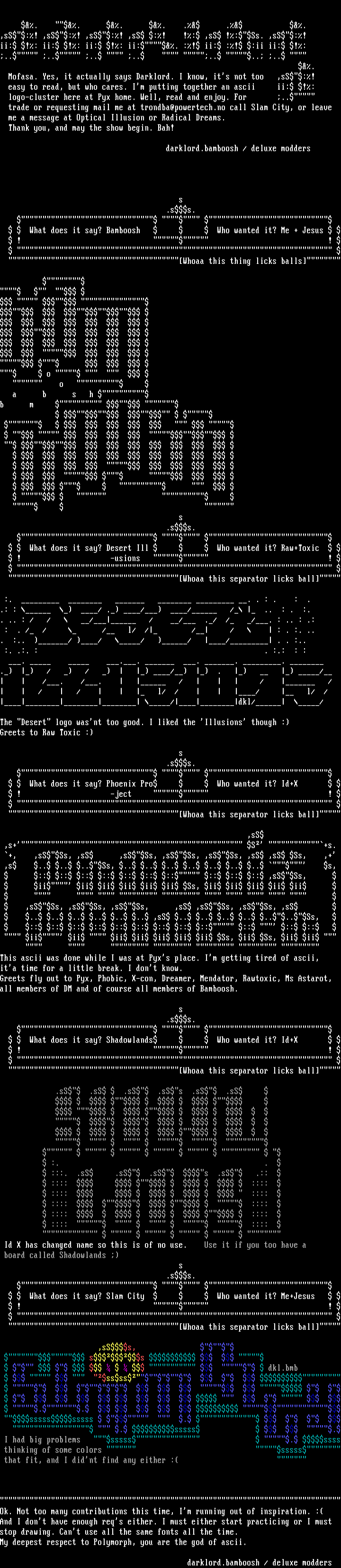 My deepest respect to Polymorph, you are the god of ascii.