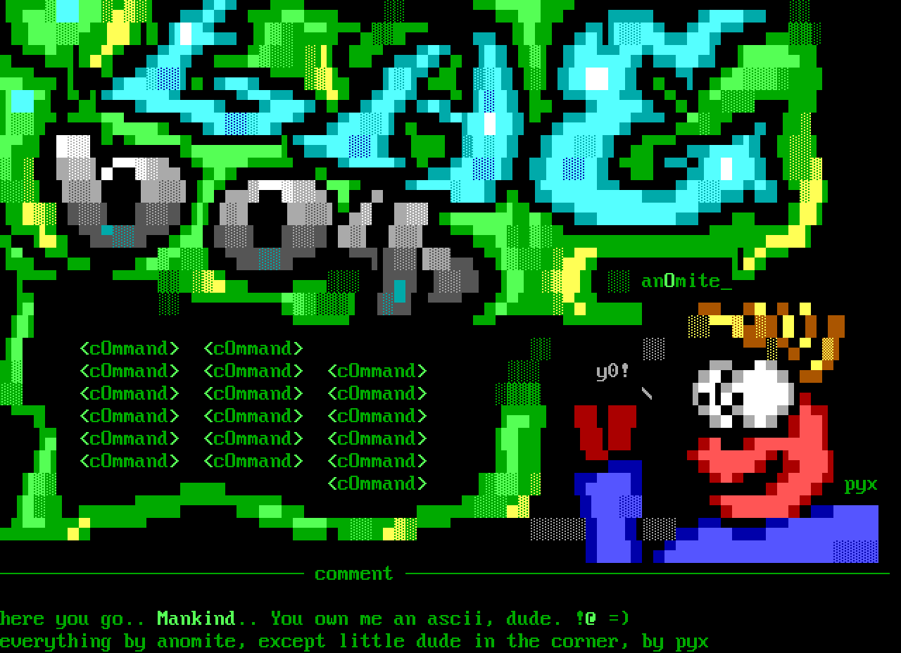 here you go.. Mankind.. You own me an ascii, dude. !@