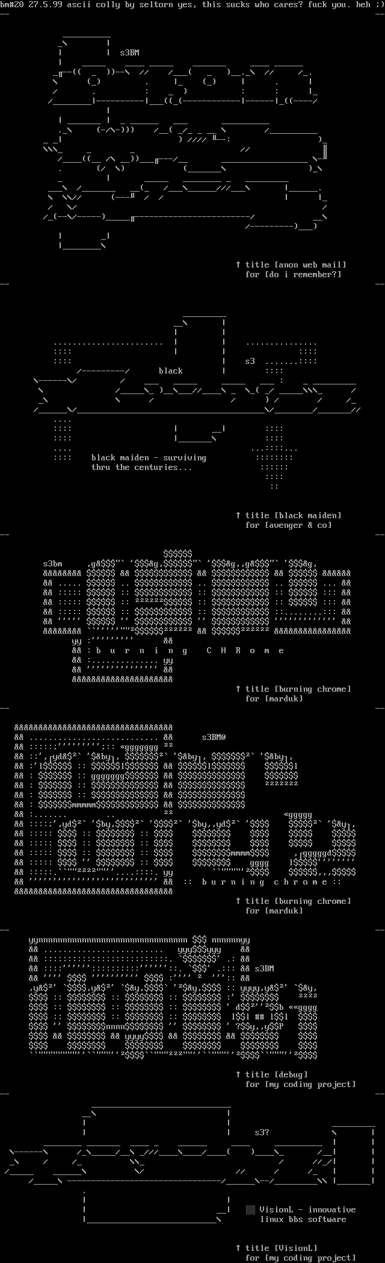 bm20 27.5.99 ascii colly by seltorn yes, this sucks who cares? fuck you. heh -- --