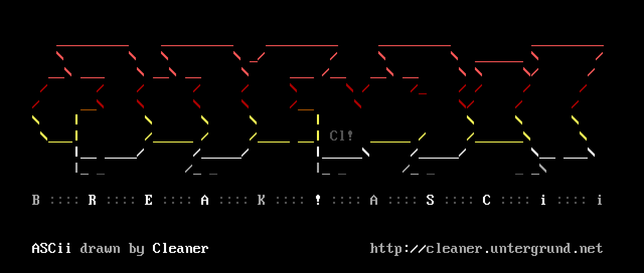 ASCii drawn by Cleaner http://cleaner.untergrund.net