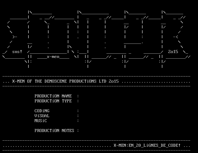 ... X-MEN OF THE DEMOSCENE PRODUCTiONS LTD 2o15 ............................