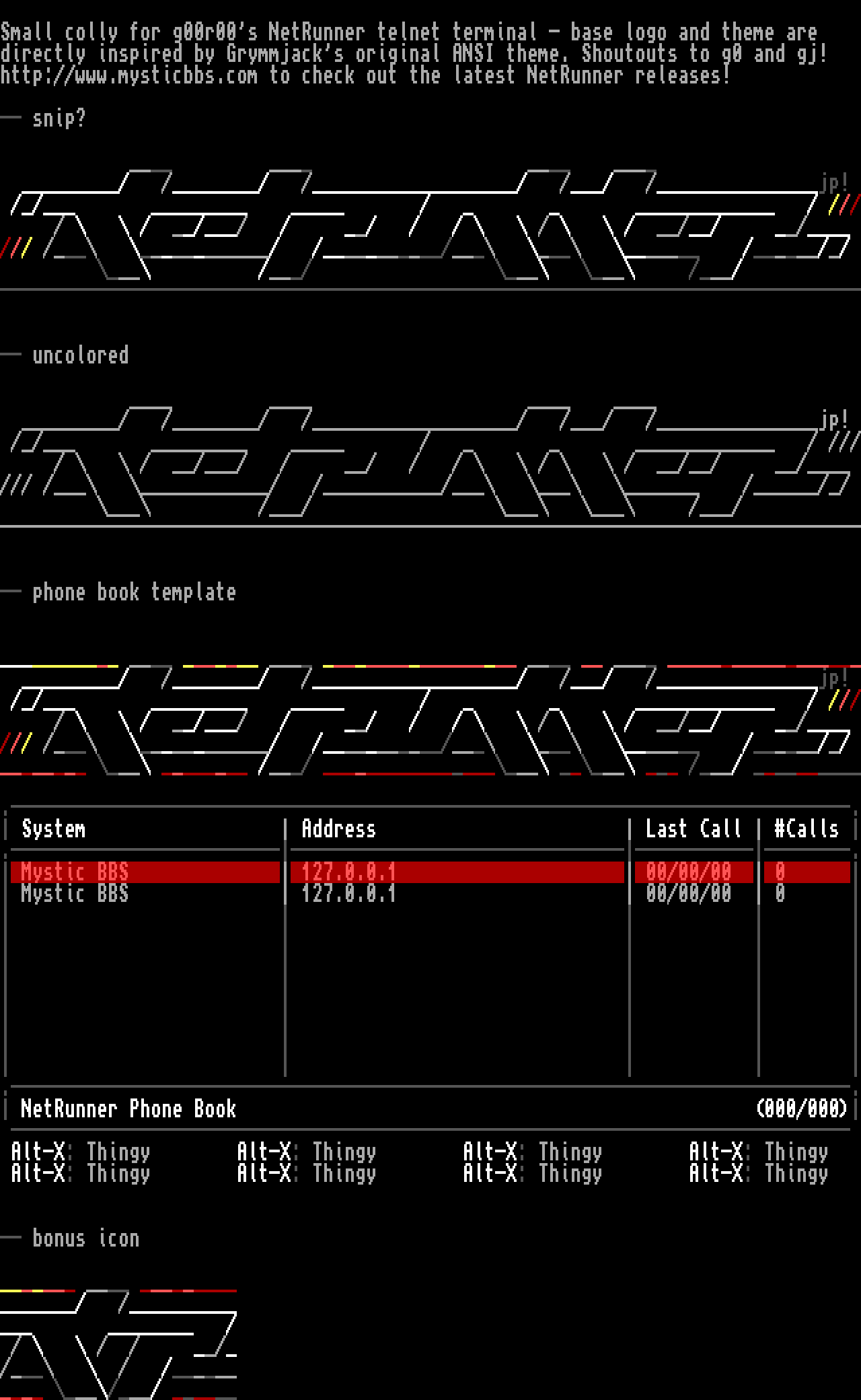Small colly for g00r00s NetRunner telnet terminal - base logo and theme are