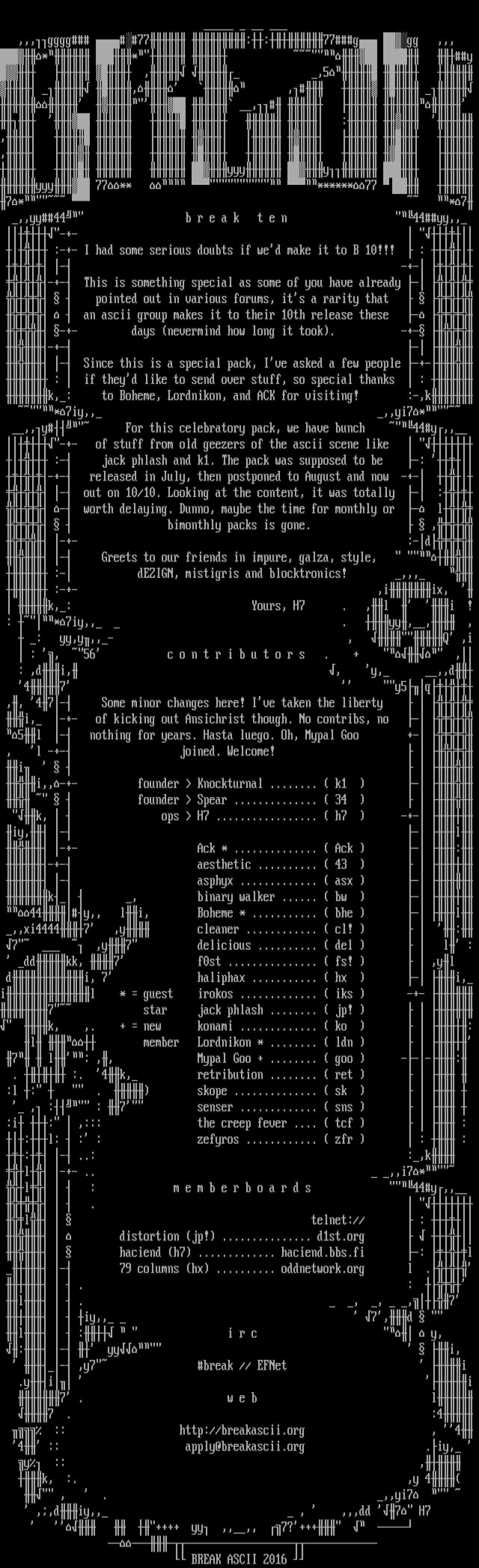 BREAK ASCII 2016