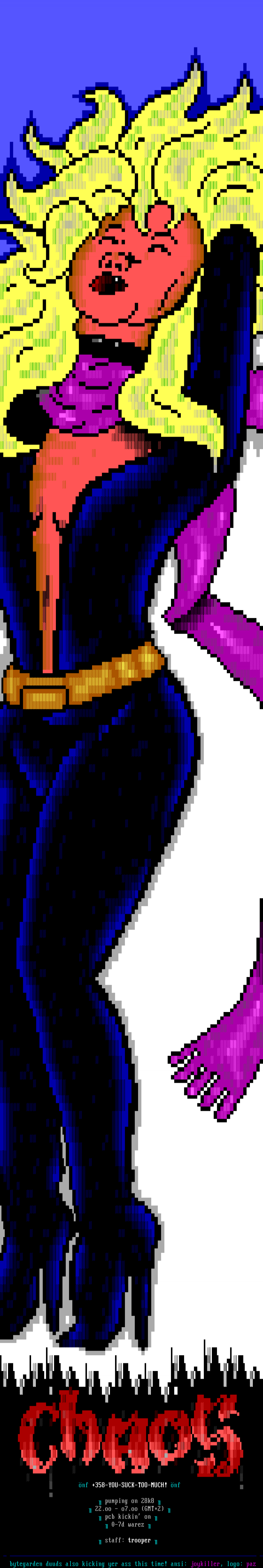bytegarden duuds also kicking yer ass this time! ansi: joykiller, logo: paz