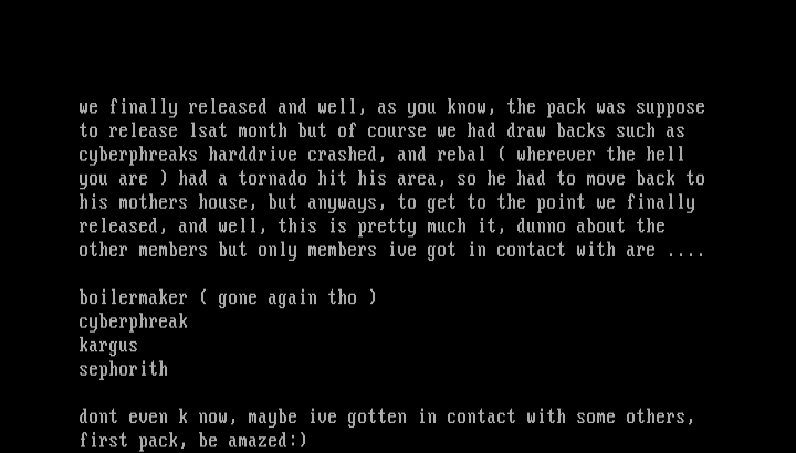 cyberphreaks harddrive crashed, and rebal wherever the hell