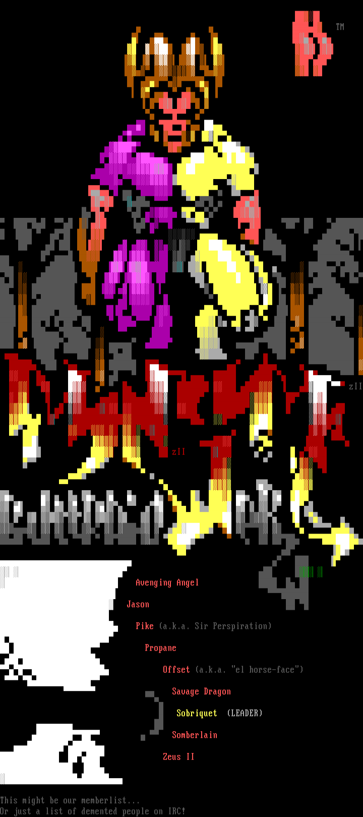 Or just a list of demented people on IRC!