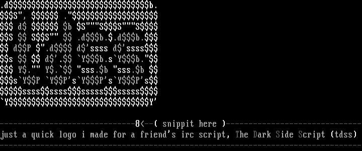 ------------------------------8-- snippit here ------------------------------just a quick logo i made for a friends irc script, The Dark Side Script tdss