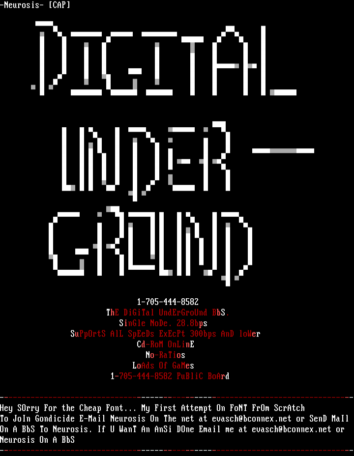 On A BbS To Neurosis. If U WanT An AnSi DOne Email me at evasch@bconnex.net or