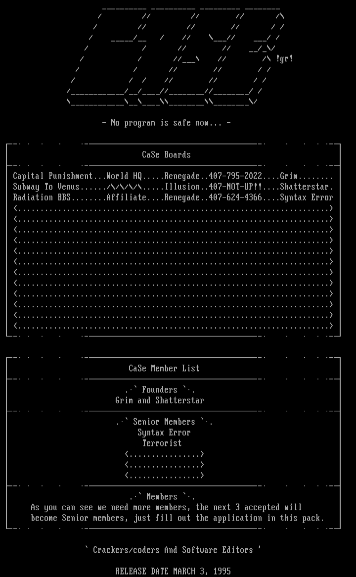 Radiation BBS........Affiliate....Renegade..407-624-4366....Syntax Error