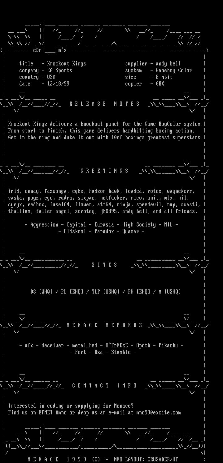 : M E N A C E 1 9 9 9 C - NFO LAYOUT: CRUSADER/HF :