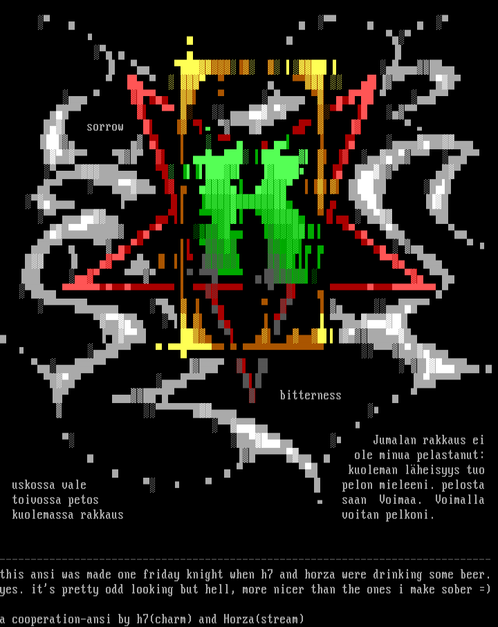this ansi was made one friday knight when h7 and horza were drinking some beer.