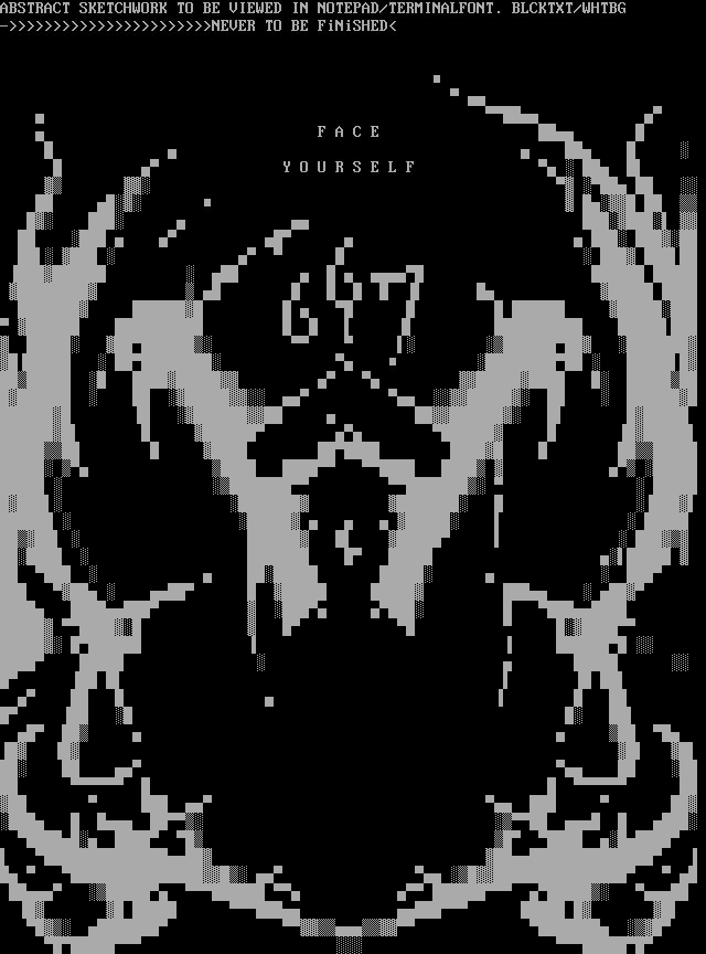 ABSTRACT SKETCHWORK TO BE VIEWED IN NOTEPAD/TERMINALFONT. BLCKTXT/WHTBG