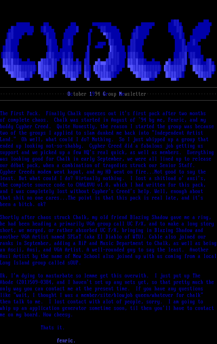 aos. Chalk was started in August of 94 by me, Fenric, and mybud