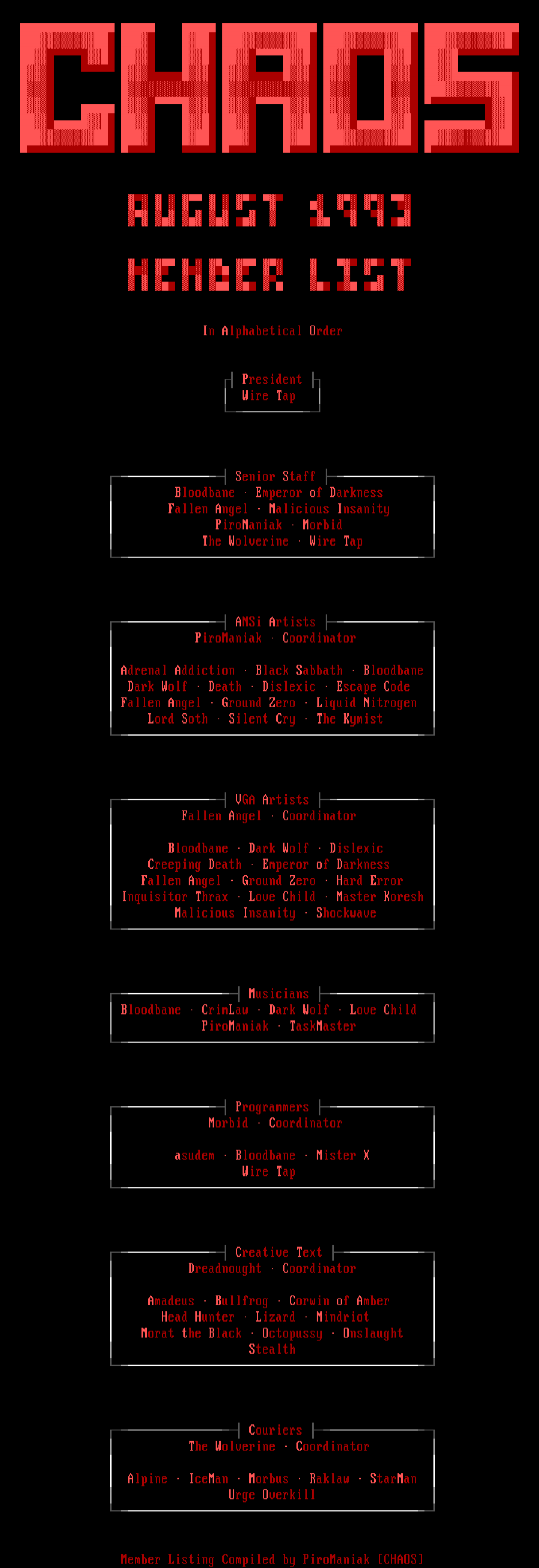 Member Listing Compiled by PiroManiak CHAOS