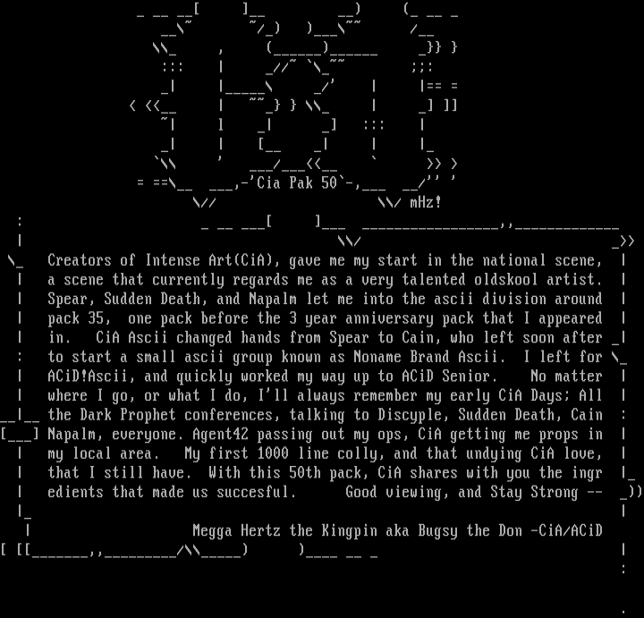 ACiD!Ascii, and quickly worked my way up to ACiD Senior. No matter