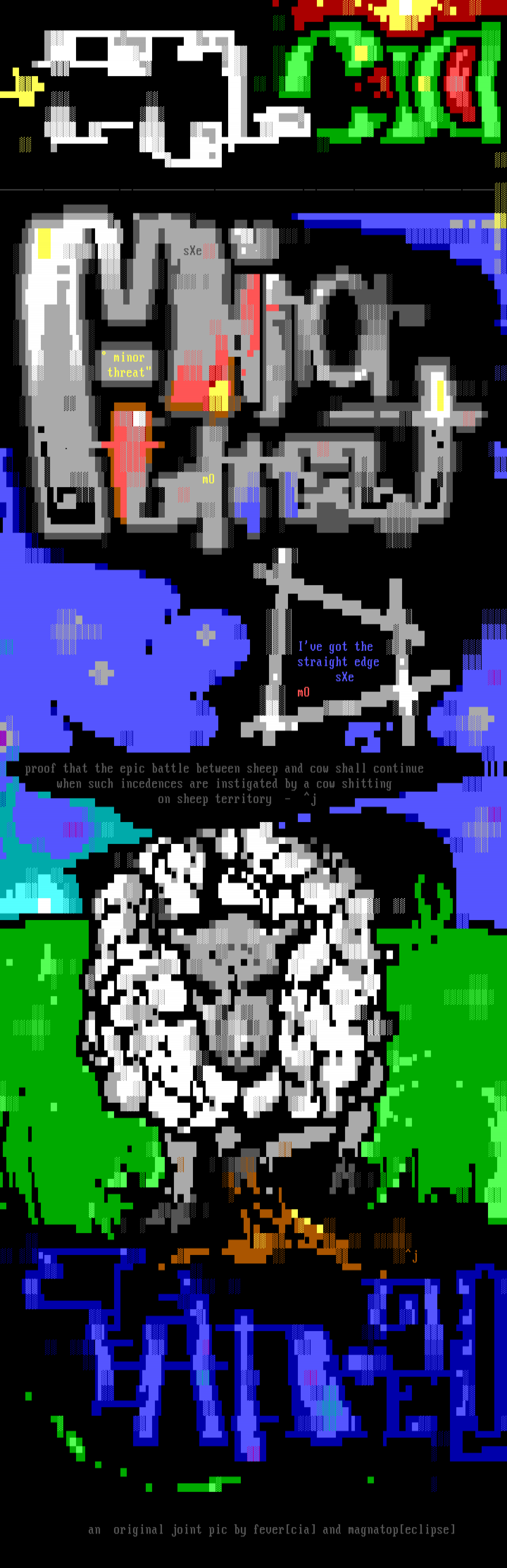 Ive got the straight edge sXe mO proof that the epic battle between sheep and cow shall continue when such incedences are instigated by a cow shitting on sheep territory - j sulhr