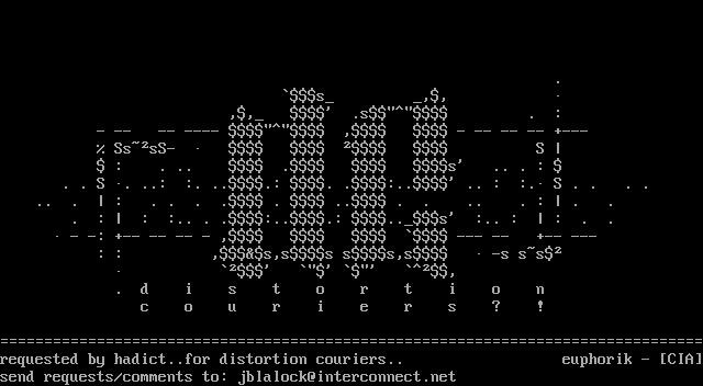 requested by hadict..for distortion couriers.. euphorik - CIAsend requests/comments to: jblalock@interconnect.net