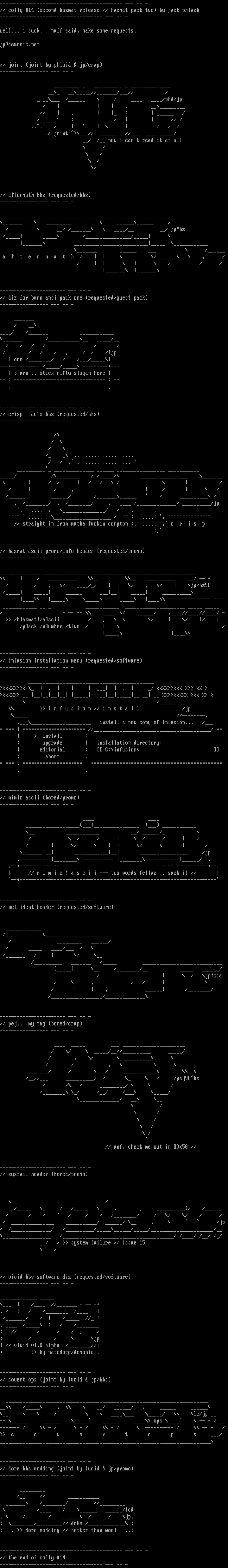 // hazmat ascii promo/info header requested/promo