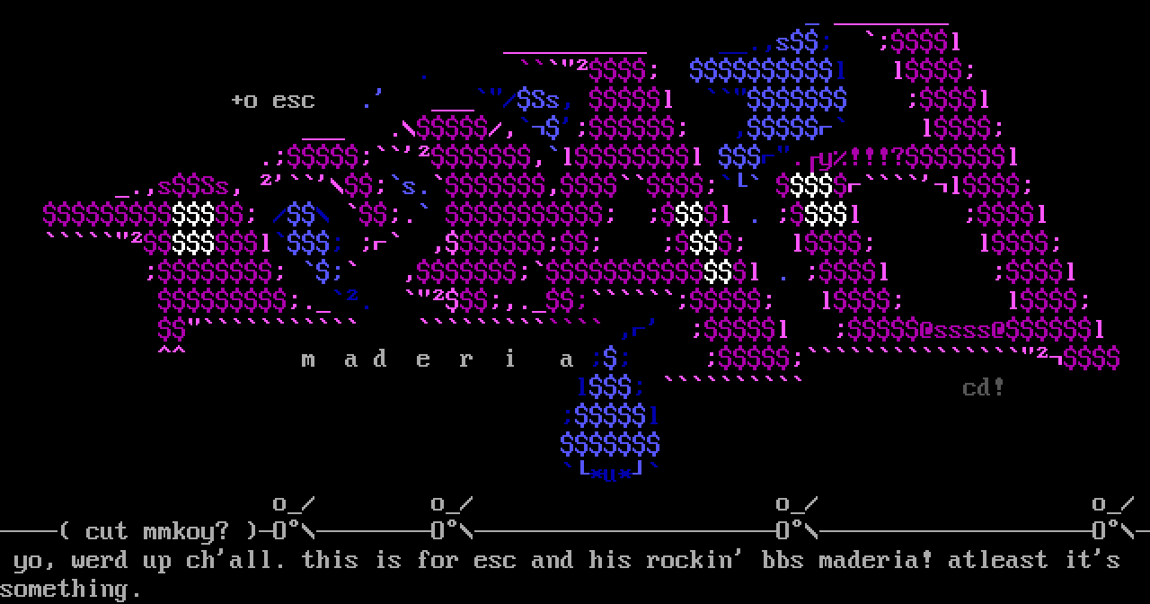 cut mmkoy? OOOO yo, werd up chall. this is for esc and his rockin bbs maderia! atleast its