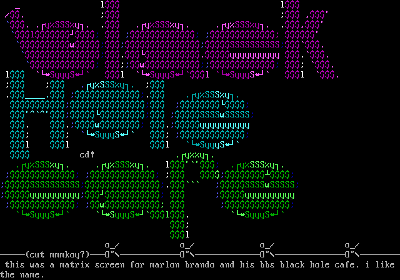 cut mmmkoy?OOOO this was a matrix screen for marlon brando and his bbs black hole cafe. i like