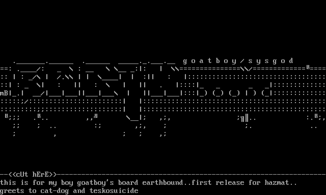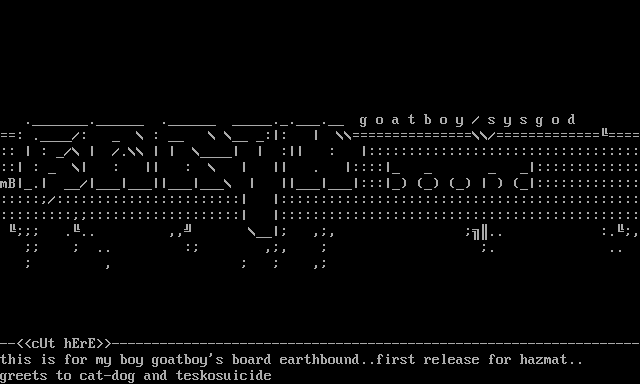 --cUt hErE------------------------------------------------------------------this is for my boy goatboys board earthbound..first release for hazmat..