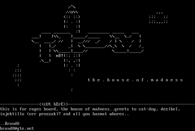 ----------------cUt hErE----------------------------------------------------this is for rages board, the house of madness..greets to cat-dog, dezibel,