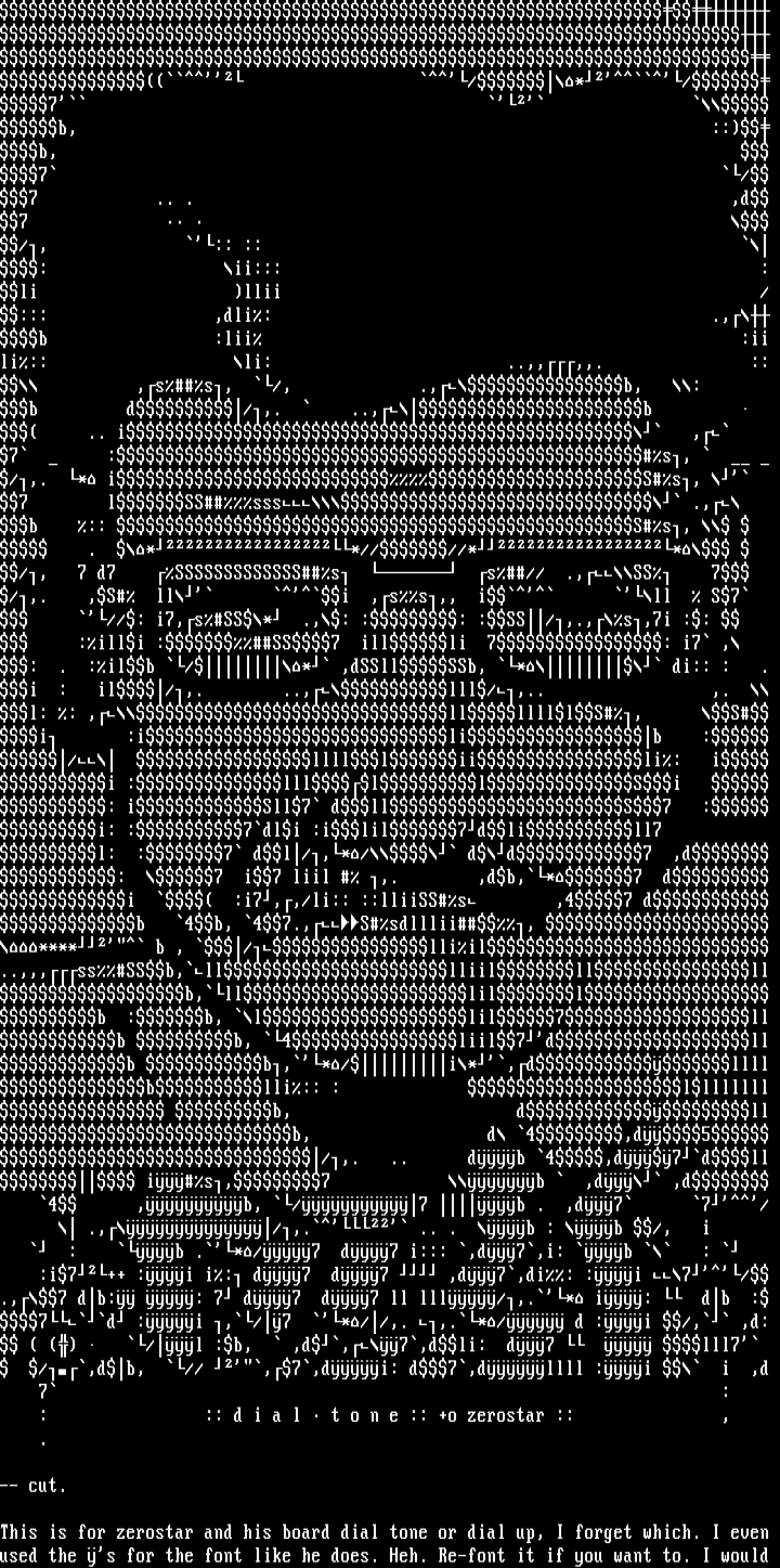 This is for zerostar and his board dial tone or dial up, I forget which. I even